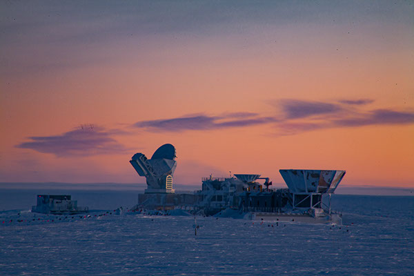 The South Pole Telescope at dawn after six months of night.
